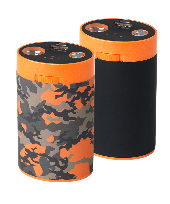 Få varmen tilbage i de kolde fingre med en håndvarmer, der samtidig fungere som strømkilde til vores varmesåler og som powerbank til dit elektroniske USB/5V udstyr og med indbygget, kraftig LED lommelygte.